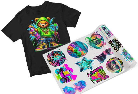 Our high-quality DTF transfers apply seamlessly to a wide range of fabrics and surfaces. Whether you're customizing cotton tees, nylon bags, or athletic wear, you'll get bold colors, crisp detail, and long-lasting results. Need bright whites, solid fills, gradients, or fine lines? We've got you covered.