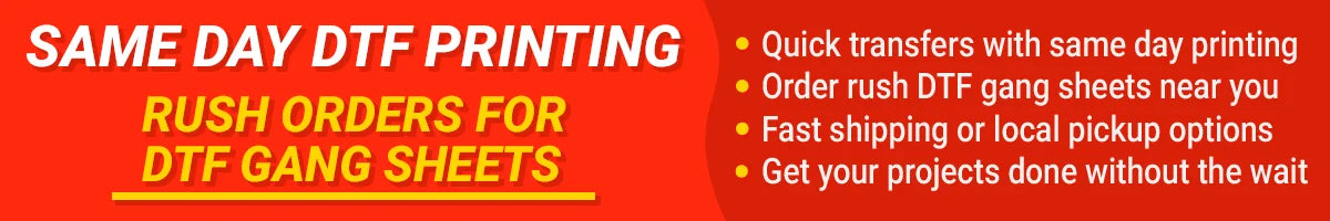 ¿Los necesitas lo antes posible? ¡Agrega nuestra Impresión en el Mismo Día a tu pedido de pliego DTF y obtén tus transferencias vibrantes sin esperar!