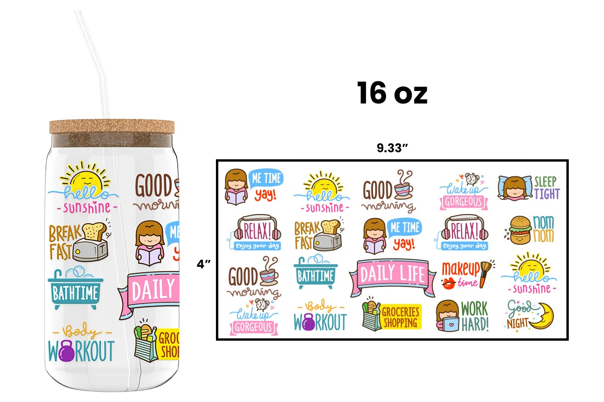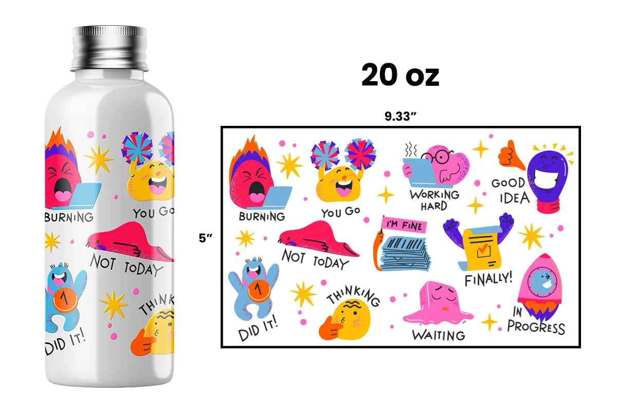 Puedes personalizar varios productos sólidos con nuestros stickers UV DTF, que funcionan muy bien para agregar estilo. A diferencia de la impresión en tela, con los stickers UV DTF, el tamaño dependerá completamente del artículo que desees personalizar. A continuación, se presentan algunas pautas básicas para ayudarte a escalar tus diseños para tazas, botellas, artículos promocionales y otros.