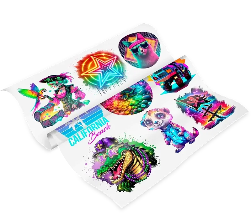 Mercancía para discotecas : Crea transferencias DTF de neón para ropa de club que brillan con luz negra. Ideales para uniformes del personal, mercancía VIP y regalos para clientes que mejoran la experiencia en el club.